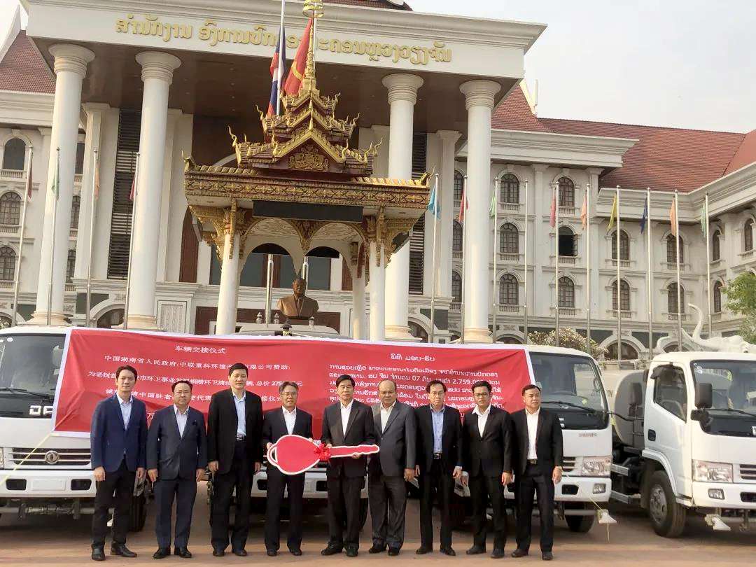 2月26日,盈峰環境向老撾萬象市捐贈了7臺總價值近300萬元的智能環衛裝備,全面支持萬象市城市環境衛生事業發展。中國駐老撾大使姜再東出席了交接儀式,并將環衛車交付給萬象市市委書記兼市長辛拉馮.庫派吞。